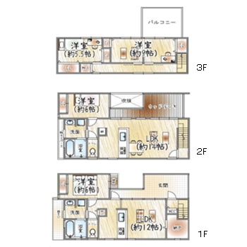 | ◆土地面積約30.38坪 ◆川西池田駅徒歩12分 ◆2015年町田工務店施工 ◆5LDKLDK+Sの 完全二世帯住宅 ◆各LDK約12帖以上 |