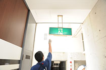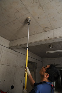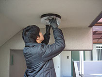 煙や熱を感知する感知器は、建物の各部屋の天井などに取り付けられているケースがほとんどで点検作業はその1個1個を入念に法で定められた機器でチェックしていきます。ですから、居住されているマンションなどの点検作業では、各室の居住者の方のご協力が必要となります。従って事前に居住者の方への連絡・掲示等を行い、ご理解をいただいた上で点検作業を実施し、オーナー様他各所に作業報告書を提出いたします