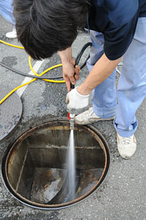 私たちが毎日口にする飲料水も大切なものですが、日々使用する台所や洗面所などの生活用水を流す排水管の清掃も大切なものです。台所などでは、油分や固形物をはじめ、様々な排水が流れます。それに伴い、排水管には血液のコレステロールのように徐々に汚れが付着し、排水が悪くなった上に、異臭を発したり、雑菌が繁殖しやすい状態になり、いずれは、排水管の詰りや漏水事故が発生したりします。従って一般的には、年間1回以上の排水管清掃が必要となります。