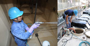 ■貯水槽清掃部門![]() ビルやマンションの大半は、大量の水を消費する為に、一旦貯水槽に水を貯めて、そこから各戸に供給されるシステムをとっています。しかし、貯水槽内部も様々な要因で汚れていきます。そこで水道法によって年1回の貯水槽の清掃が定められています。 |