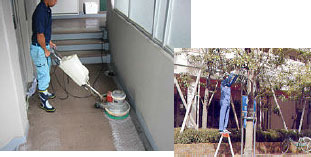 ■日常清掃作業・特殊清掃作業・植栽管理![]() 弊社の清掃管理には、大別して毎日(またはゴミの日に併せて)行う日常清掃作業と定期的に機械や薬品を使って行う特殊清掃作業や、植木や芝生の手入れなどを行う植栽管理(剪定)作業などもございます。 |