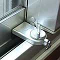 ガラス内面に防犯フィルムを貼付けると、ガラスの破壊に要する時間が長くなり、破壊のためにより強い力を必要とするために騒音が大きくなり、ガラス破りによる侵入が難しくなります。併せて、サッシ部分に補助錠(例=右写真)を取り付けることで、侵入防止にさらに効果的です。