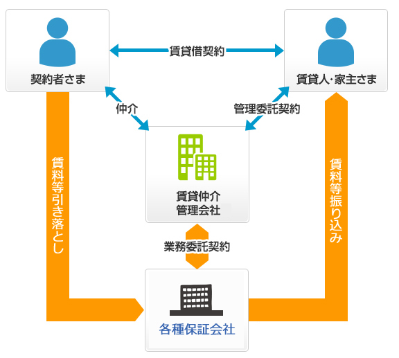 保証会社を入れて契約をすれば、確実に賃料が保証されます。 当社では各種保証会社と提携し、当社が指示した金額を入居者の口座から自動的に引き落とし、オーナー様の口座へ振り込む方式を採用しています。万が一口座に引き落とす賃料分の残高が無くても、保証会社が立て替えて支払います。これにより、オーナー様が入金管理をしていなくても確実に入るようになり安心して頂けます。