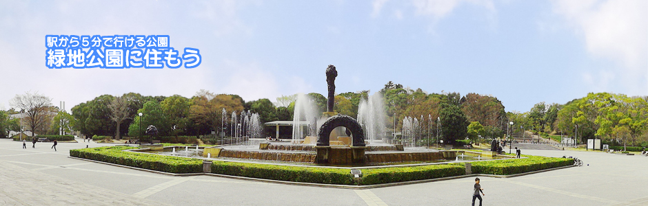 有名な噴水広場(東中央広場)です。緑地公園駅からのメインゲートです。