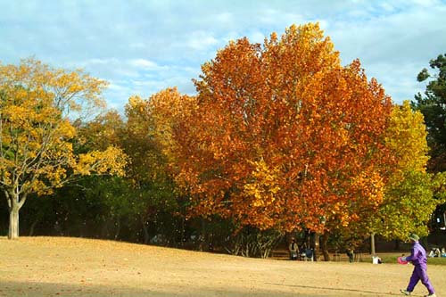 秋の原っぱ。ここはバーベキューも許可されていて、休日に楽しむ人も多いようです