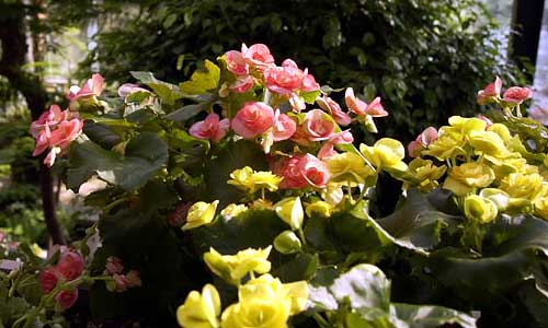 温室内にはランやブーゲンビリア、ベゴニアなどが色とりどりに咲き競います