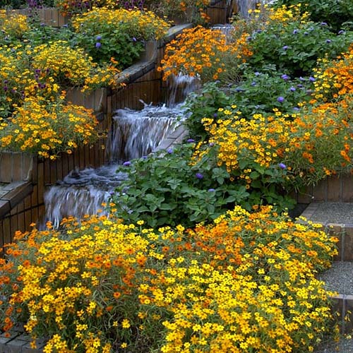 園内のあちこちに、鮮やかなものから愛らしいものまで数多くの花々が見られます