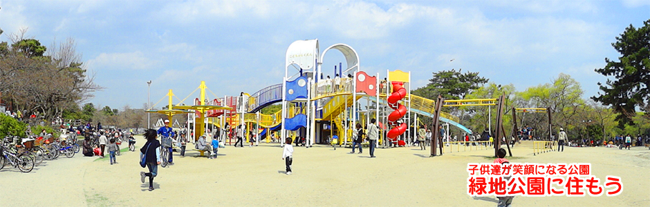 こどもの楽園と言われる広場には大型遊具が多数あり。長さ20mのローラースライダーが人気のようです。