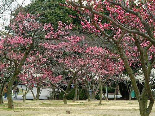 レストハウス前には梅林があり、早春には紅白の梅の花が見事です