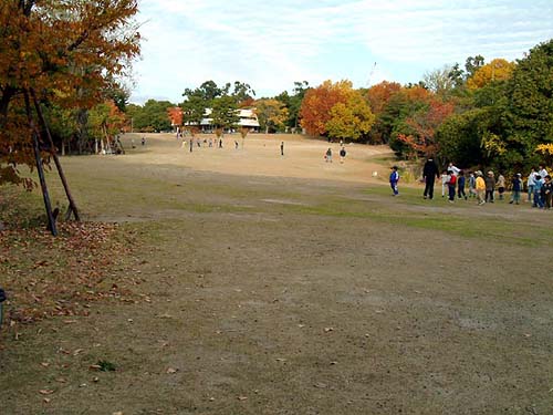 秋の原っぱ。ここはバーベキューも許可されていて、休日に楽しむ人も多いようです