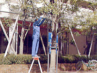 清掃管理には、大別して毎日(又はゴミの日に併せて)行う日常清掃作業と定期的に機械や薬品を使って行う特殊清掃作業や、植木や芝生の手入れなどを行う植栽管理(剪定)作業なども含まれてきます。また、必要に応じて、ビルやマンションの外壁のクリーニングや庭池の清掃なども行います。